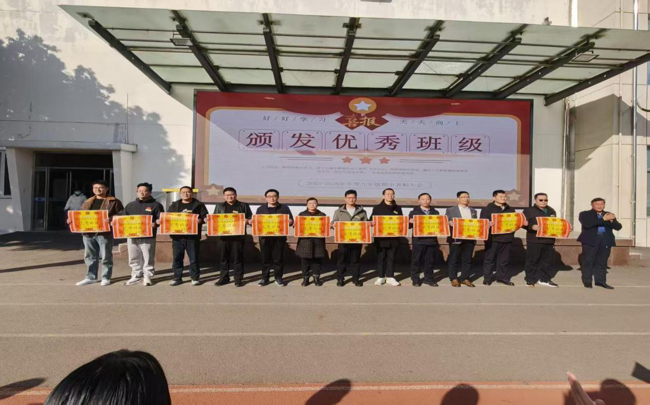 随后,级部刘延主任上台宣读本次期中考试表彰决定。表彰决定紧扣九年级中考备考关键阶段,聚焦学业成绩、班级管理、学风建设等核心维度,明确表彰了表现突出的优秀班集体及各班级获评“尚贤学星”的优秀学生,既客观肯定了师生们这段时间的辛勤付出与阶段性成果,也为全体学子树立了可感可学的榜样,进一步点燃了全体师生“比学赶超、争先创优”的热情。