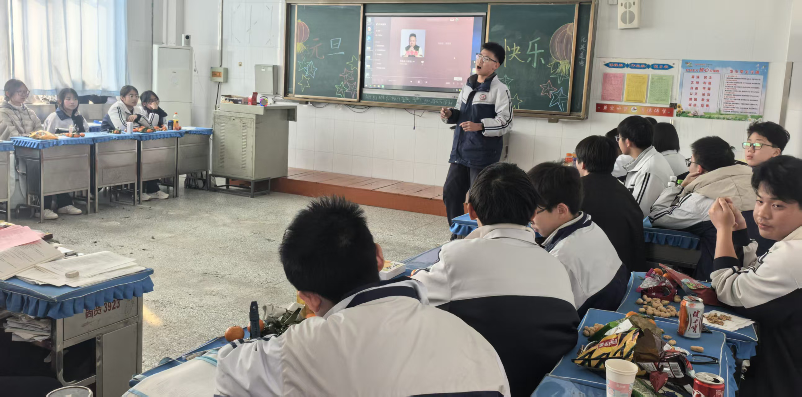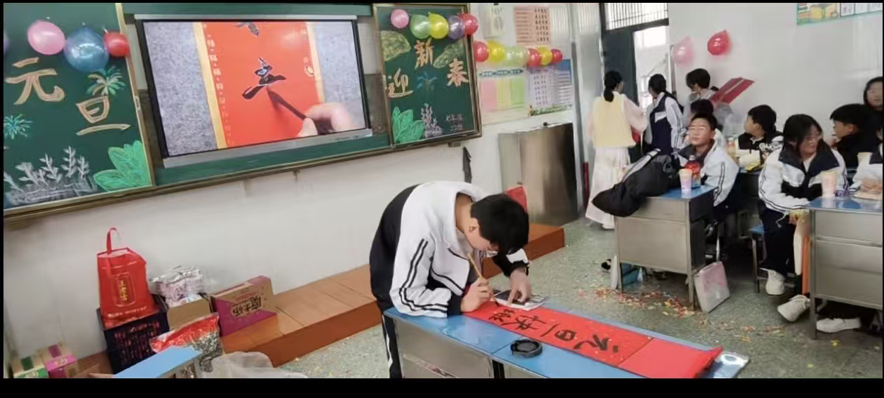 活动现场暖意涌动、其乐融融,班主任与同学们亲密互动、共庆佳节,趣味游戏、暖心祝福、默契互动轮番上演,掌声与欢呼声此起彼伏。大家在欢声笑语中分享喜悦,在温馨陪伴中传递温情,既延续了校园文化艺术节的艺术氛围,更凝聚了班级向心力,让每一位学子都感受到集体的温暖与新年的喜悦。