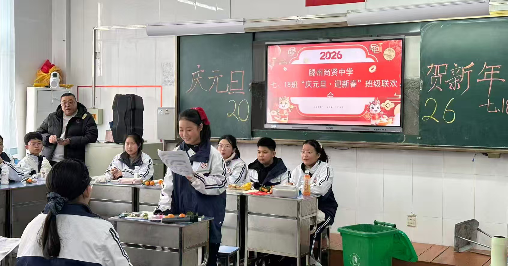接续校园文化艺术节的热烈氛围,12月31日下午,滕州尚贤中学各班级同步开展“庆元旦·迎新春”元旦联欢汇演,师生齐聚教室、喜乐相伴,以班级为单位续写艺术华章,用欢声笑语辞旧岁、迎新春。