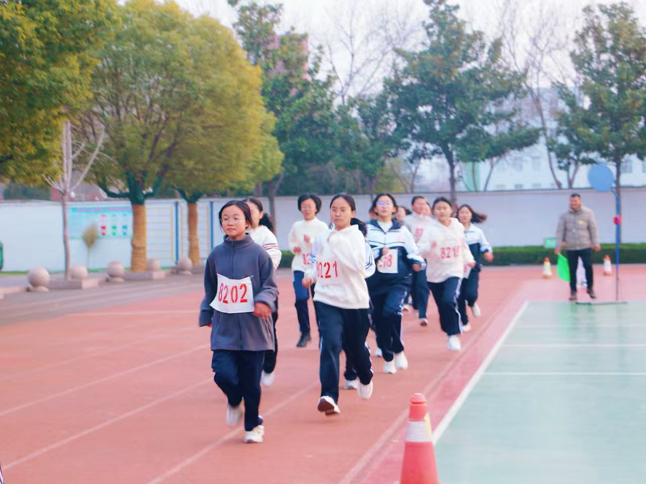 七、八、九年级学子分年级、按性别竞技,教职工按男女、年龄科学分组比拼,全校师生以奔跑赴热爱,用脚步绘就冬日校园最美风景线。